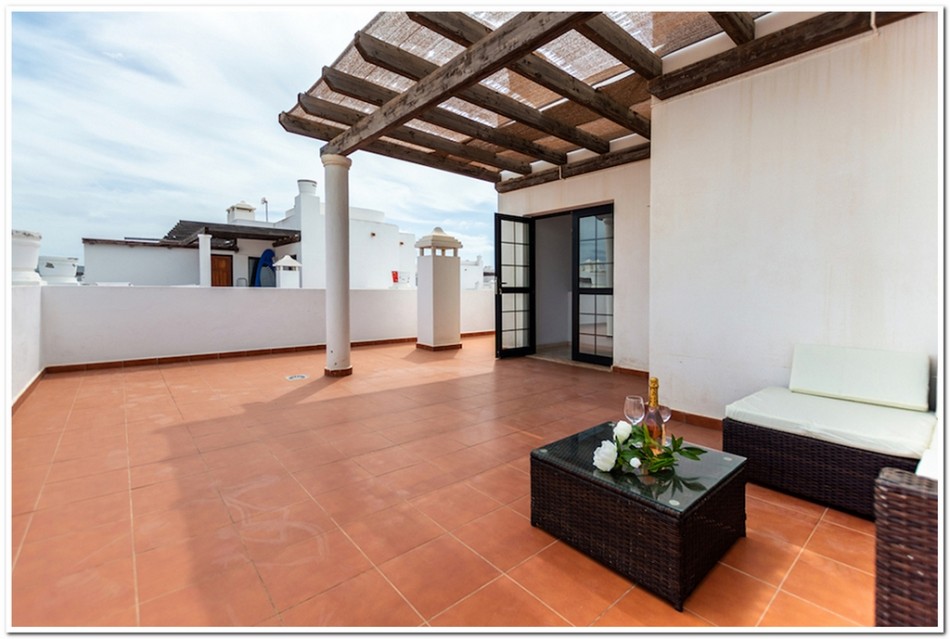SOLD - VENDIDO - This furnished and south-facing semi-detached house for sale is on Royal Park Village, a development in a superb location - just opposite the El Campanario shopping centre, a 5-minute stroll to the nearest beaches, and a 10-minute walk to the town centre.