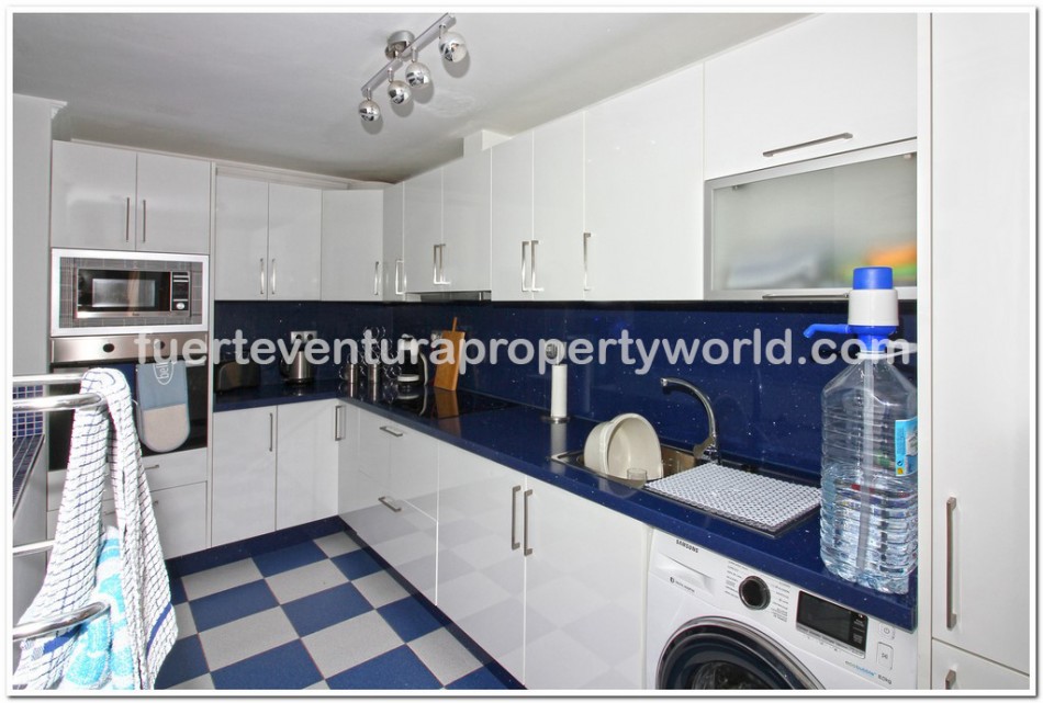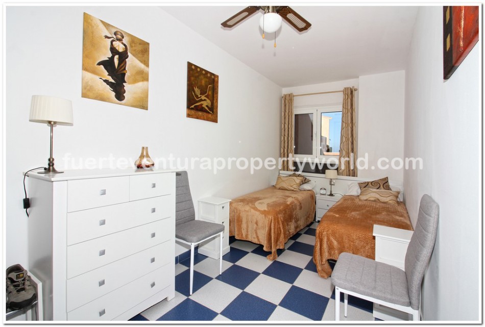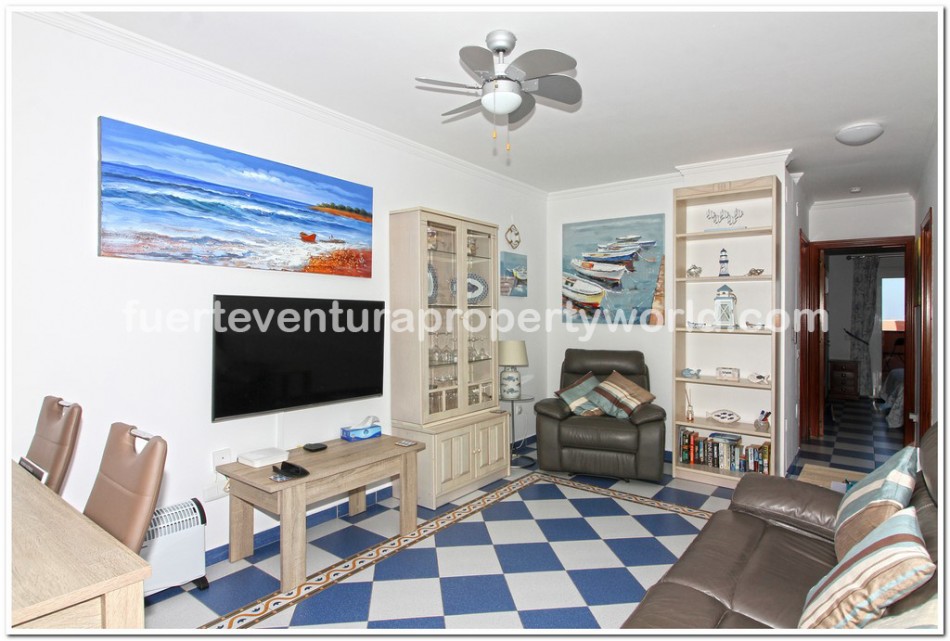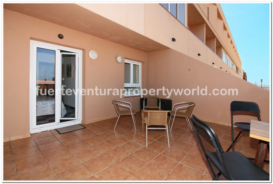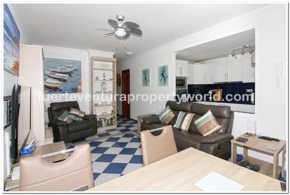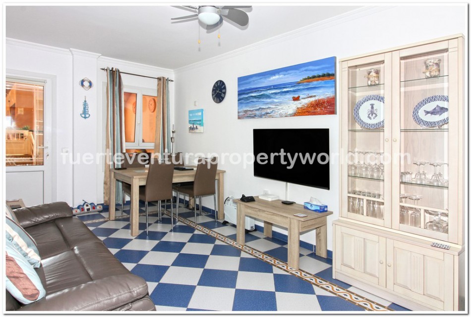 SOLD - VENDIDO - Exclusive to Fuerteventura Property World, this immaculate and fully-furnished ground floor apartment for sale is on a gated complex in a quiet residential area of the resort – very close to the Bristol promenade (Paseo Maritimo) and a few minutes’ walk to the harbour and the old town with all the shops, restaurants, bars, cafés, etc.