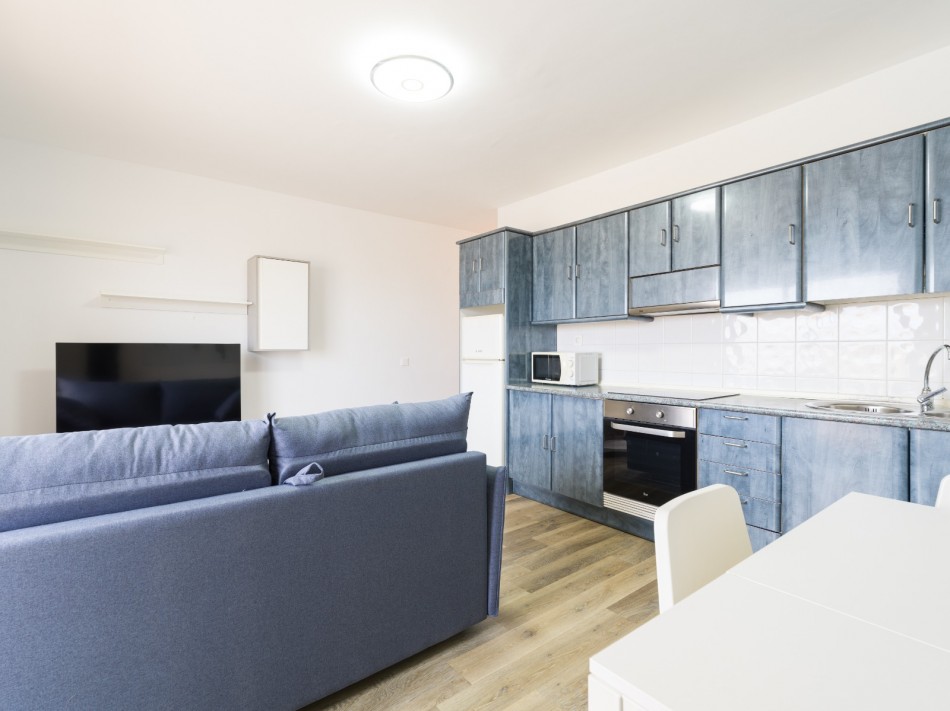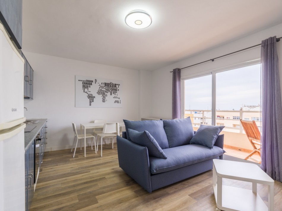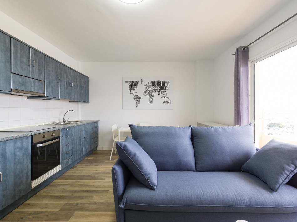 It has 2 bedrooms, a bathroom with walk-in shower facilities, a bright open plan lounge and a modern, fully fitted kitchen, and a private 8.61m2 terrace with views to the sea and the island of Lobos. Glass sliding doors allow natural light illuminating the interior of the property.