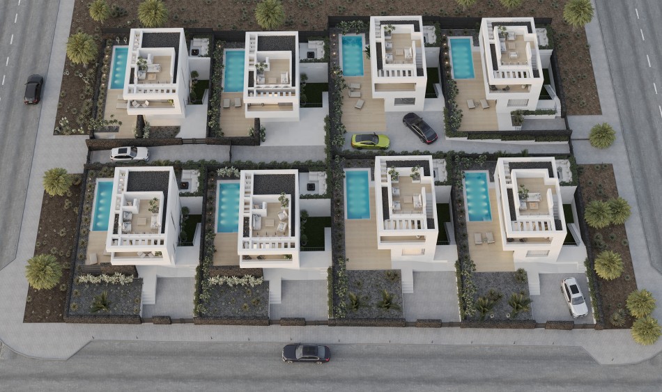 Each villa has 2-3 bedrooms, 2 en-suite bathrooms plus WC, garden, private swimming pool, and parking space. Laid out on 3 floors, each property also comes with a private roof terrace with amazing views and basement that can be used as an extra bedroom, gym, kids' playroom or for anything that you need or fancy.